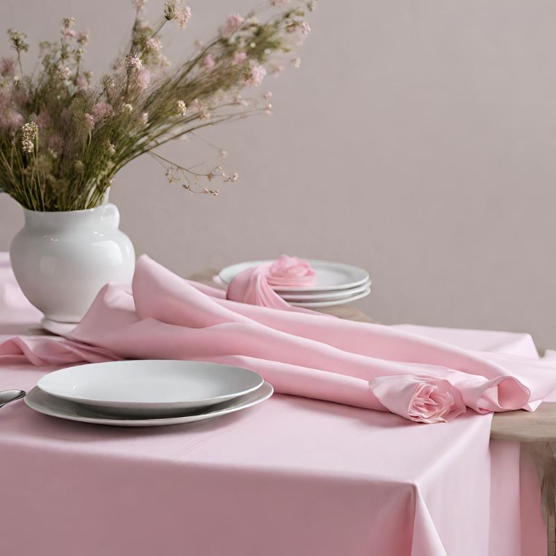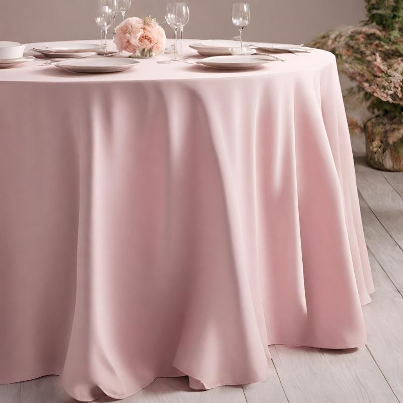 The delicate hue of pastel pink invokes a sense of softness and elegance, carrying a nostalgic charm. Our polyester round tablecloth in Pastel Pink is no exception!